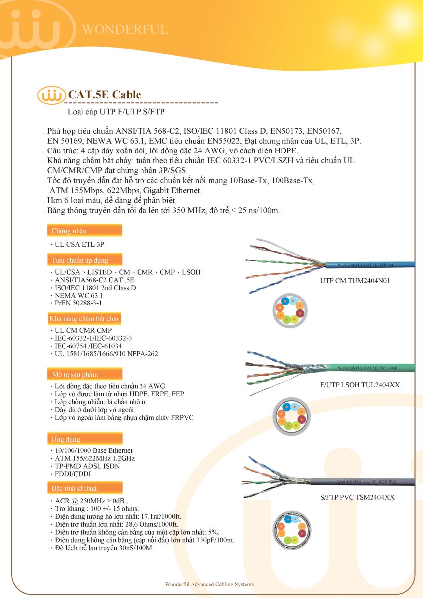 > DÂY CÁP & PHỤ KIỆN > Cáp mạng Wonderful>Cat5E, UTP, 24AWG, 4P, Solid (UTP/FTP) vỏ (CM/CMX/LSZH)